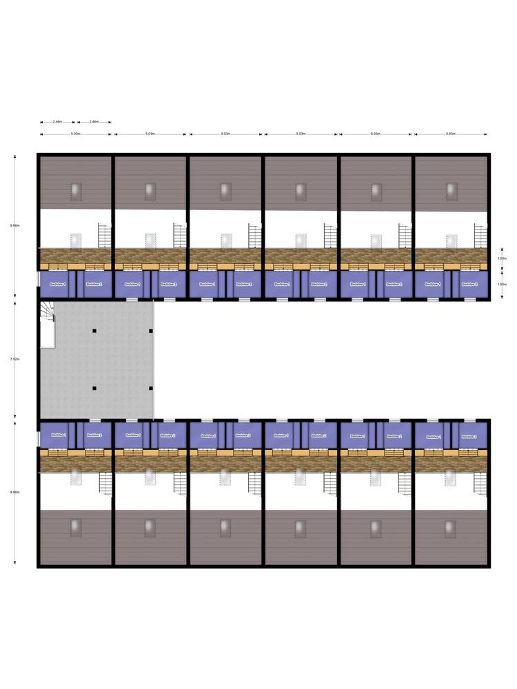Er zijn 4 slaapkamers op de begane grond met terras en eigen entree. Deze kamers zijn lekker ruim, drempelloos en allen voorzien van een ruime badkamer. De badkamers zijn voorzien van een douchestoel, toiletbeugel, kantelbare spiegel, onder-rijbare wastafel en verlengde kraanhendels.